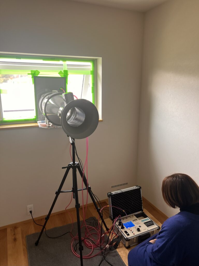 先日、S様邸の完成に伴い、気密測定を実施しました。