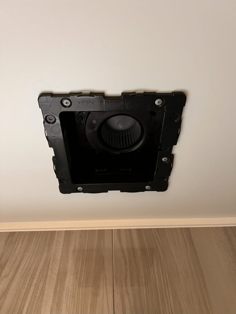 電気屋さんが、まだ換気扇を配管に繋いでいませんでした。