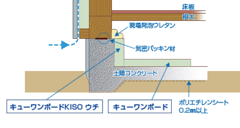 こうすると、基礎と土台の間の熱の出入りを極力小さくすることが可能です。