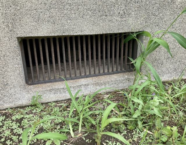 昔はこんな感じで基礎コンクリートに通気口があって、床下に湿気がこもらないようにしてました。トトロが出入りして有名ですよね。